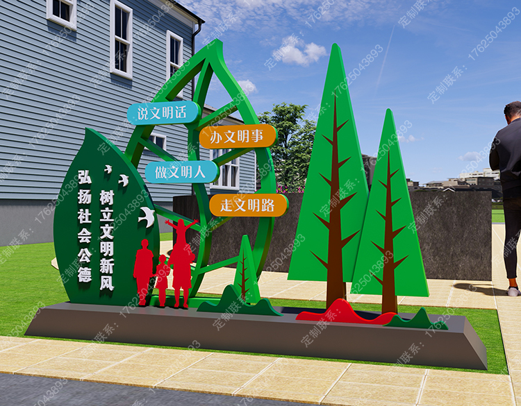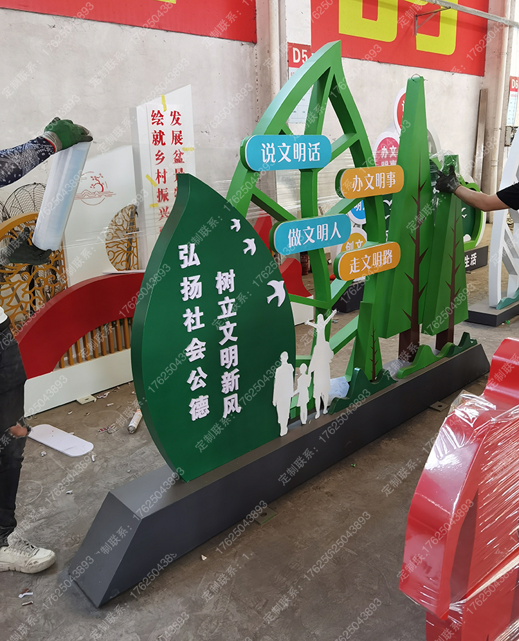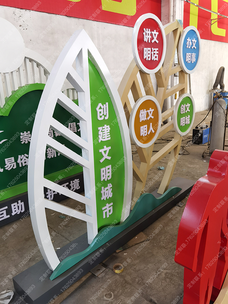 文明城市宣传牌不锈钢创文景观小品户外文明创建广告牌公园标识牌