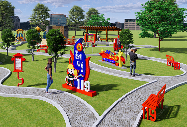 辽宁省本溪市消防主题公园,消防雕塑,消防标示翻版游戏,消防小品,119标识标牌,消防标识标牌,119座椅,消防座椅