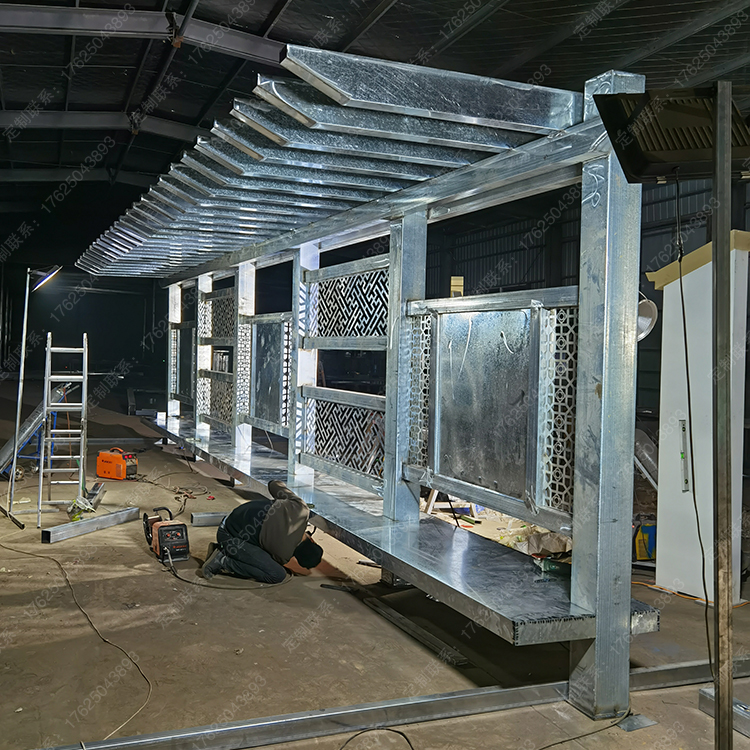 不锈钢廊架景观休息亭金属仿木纹凉亭镀锌板结构葡萄架